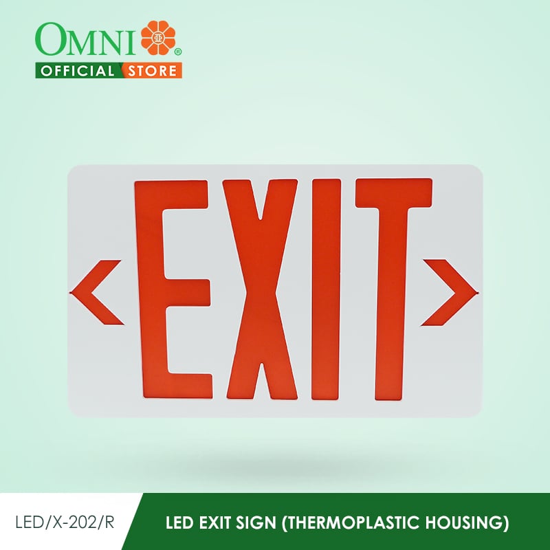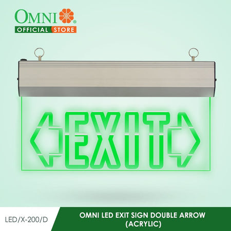 OMNI LED Exit Signs, under the model series LED/X, are a range of automatic, rechargeable emergency lighting solutions designed for clear and visible exit guidance during power failures. These signs primarily use long-lasting, energy-efficient LED technology and are available in various configurations (single/double-faced, different arrow options) to suit installation requirements.